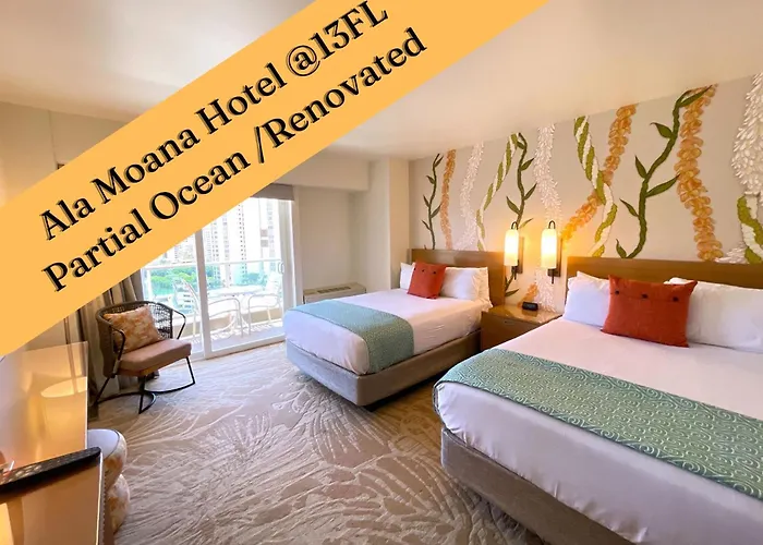 寝室1室のAla Moana Hotel 13Th Fl Partial Ocean View ホノルル 別荘は、アラモアナセンターから歩いてたった8分に位置し、プールでリラックスしたひとときを過ごすことができます。